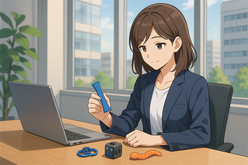 また、ADHD傾向がある方や、刺激に敏感で集中が続かないと感じている方にとっては、フィジェットトイは日常生活を支える“相棒”のような存在になり得ます。気分が落ち着くだけでなく、作業効率や生活の質にもポジティブな影響を与える可能性があります。