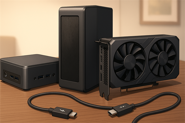 ミニPCやスリムPCは省スペースでスタイリッシュ、机の上をすっきり保ちたい人にはぴったりです。でも、「内蔵GPUでは3Dゲームがカクつく」「動画編集や3Dレンダリングで力不足」……そう感じたことはありませんか?このような不満を持つ人のための解決策が、外付けGPU(eGPU)です。