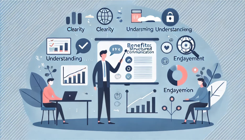 例えば、プレゼンテーションの冒頭で全体の概要を提示すると、聴衆はこれからどのような話が展開されるのかを把握しやすくなります。そして、詳細部分で具体的なデータや事例を示すことで納得感が生まれ、最後に再度要点を繰り返すことで、話がきちんとまとまります。このような流れがあることで、情報はスムーズに伝わり、相手の記憶にも長く残ります。